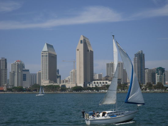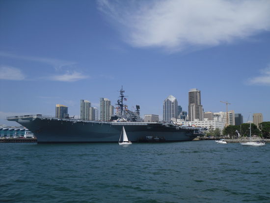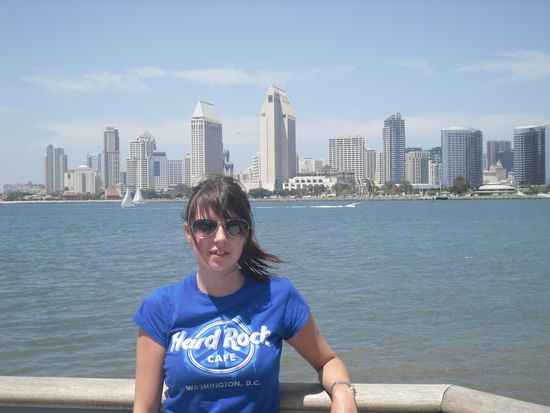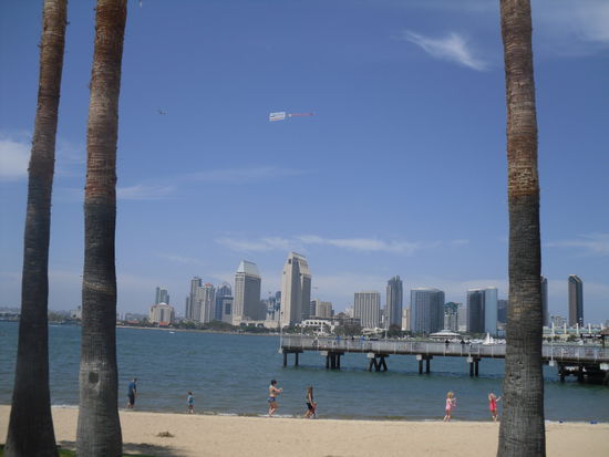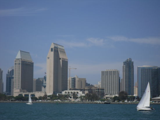 In der Nähe vom Fährterminal fanden gerade die Vorbeteitungen für eine Hochzeit statt. Der Bräutigam war in Uniform und die Braut sah aus wie Butterbiskuit. Furchtbar! Naja das Panorama von San Diego entschädigte meine gequälten Augen
