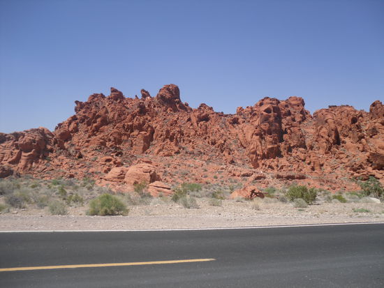 Irgendwann kam ich dann auf die Landstraße Richtung Valley of Fire. Und hier hatte ich dieses Freiheitsgefühl, das man bekommt wenn man sich die einsamen Straßen Amerikas vorstellt.