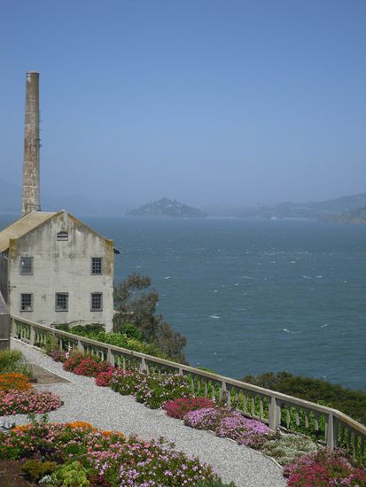 Alcatraz sieht klasse aus. Es ist eine alte Gefängnis-Insel. Früher kamen hier die gefährlichsten Verbrecher aus der Region hin, weil das Fluchtrisiko sehr gering ist. Die Insel ist eine einziger Felsen, daher wird sie auch "The Rock" genannt. Der berühmteste Insasse war wohl Al Capone.