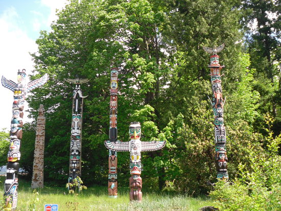 Diesen schönen Tag habe ich im Stanley Park verbracht, dem größten innerstädtischen Park Nordamerikas. Hier sind 3 Hauptaktraktionen zu finden. Das Aquarium, einige Totempfähle und den Seawall. Letzteres ist eine kilometerlange Promenade, die einmal um den Stanley Park führt. Das Aquarium mit den Delfinen und den Belugawalen habe ich ausgelassen. Das meiste habe ich schon in SeaWorld gesehen. Aber die Totempfähle waren klasse, so bunt. Auch die Aussicht aufs Wasser und die Berge war einmalig. Auch die vielen schönen grünen Bäume haben mir gefallen.