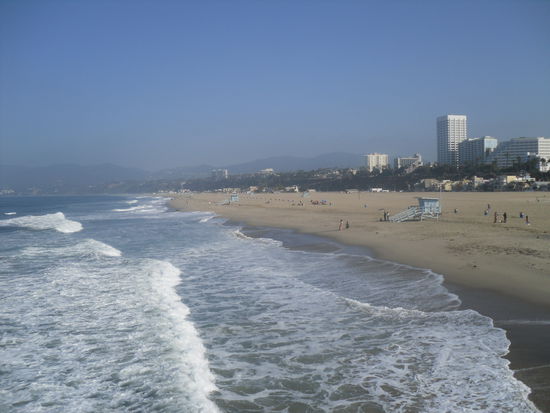Nachdem ich mich etwas ausgeruht hatte, fuhr ich weiter nach Malibu. Hier sieht es auch nicht anders aus als am Strand von Santa Monica. Die Villen der Stars konnte ich auch nur vom Weiten sehen. Also fuhr ich wieder zurück nach Santa Monica und legte mich für den Rest des Tages an den Strand. Zusammen mit vielen amerikanischen Familien, die zum fahrradfahren, spielen oder sportmachen hergekommen sind. Mein Sonnenbrand auf dem Handrücken und auf dem Kopf hat sich auch nur etwas verschlechtert