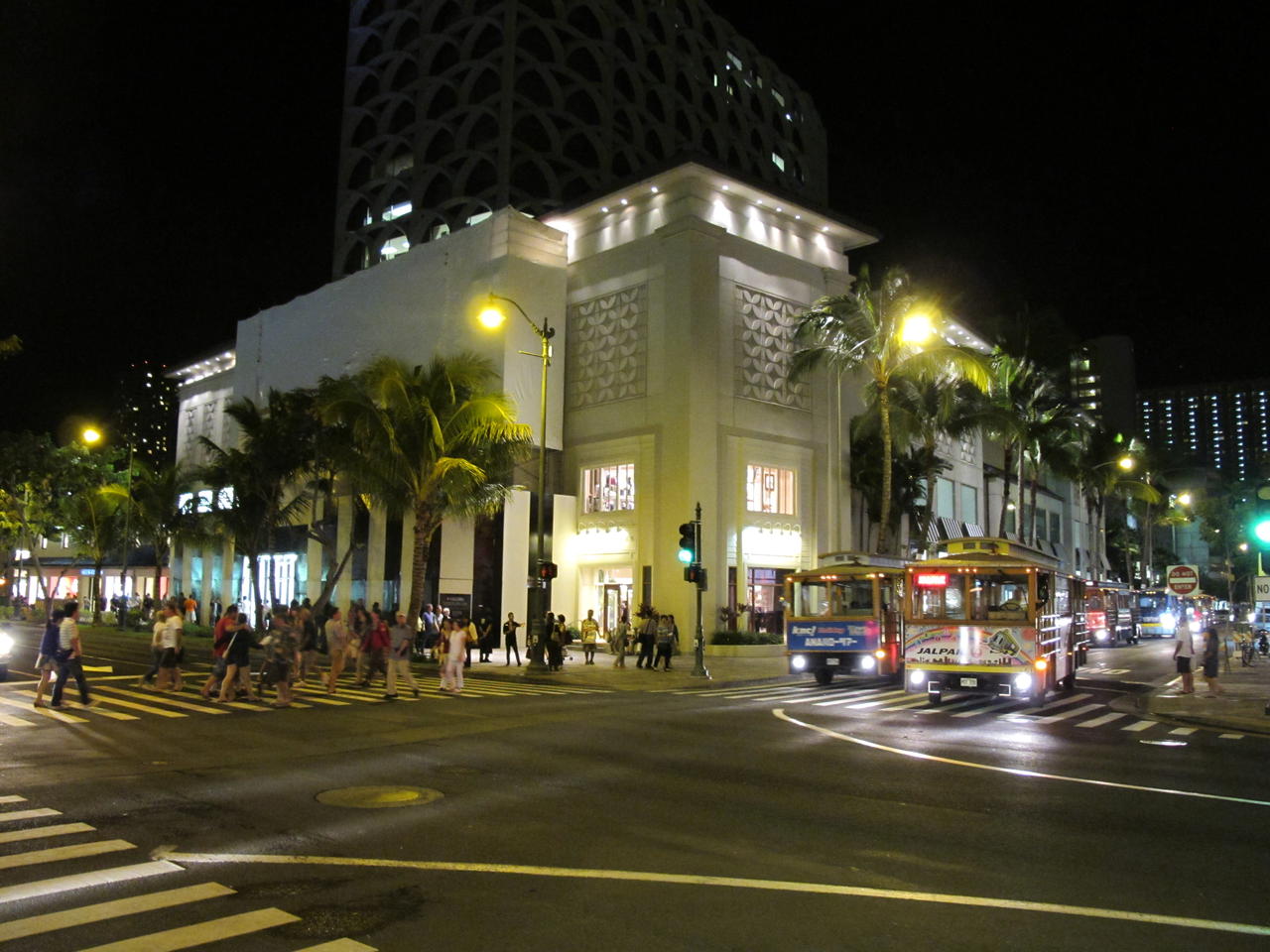 Wurde es nicht, hatte heut irgendwie kein Glück mit dem Wetter und bin, nachdem ich wieder im Süden war zum Ewa Beach gefahren, was aber zum Wetter paßte, es war nix. Also schon am frühen Nachmittag zurück Richtung Hotel gefahren, was sich dann noch ein wenig hingezogen hatte, den es gab leicht Stau, sowohl auf der H1 als auch auf dem Highway 92 den ich dann gefahren bin. Mal schaun wie ich morgen früh zum Flughafen fahren werde, aufm H1 hab ich etz scho öfters Stau gesehen, obwohl der mich ohne Stau in ein paar Minuten zum Flughafen bringen würde. Naja so um 4 war ich wieder im Hotel, in Waikiki hats da nimmer geregnet und es kam scho leicht die Sonne wieder durch. Im Meer und am Strand war scho wieder einiges los. Die Zeit nutzte ich um scho mal weng den Bericht zu schreiben und ein bißchen aufzuräumen, morgen gehts ja nach Kauai. Aber auch heut hab ich noch nen Abstecher zum Strand gemacht, was net ganz so schön wie die Tage zuvor war, aber wenn man den Waikiki Beach scho mal vor der Haustür hat sollte man es ausnutzen. Danach nochmal kurz geschrieben und gegen 7 los, ein letztes Mal abends die Kalakaua Ave entlang, ich wollte heute im HRC essen.