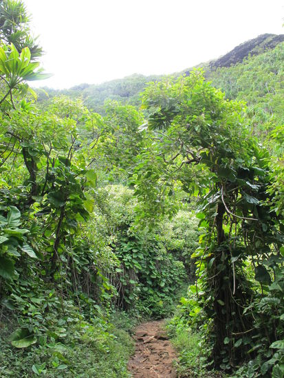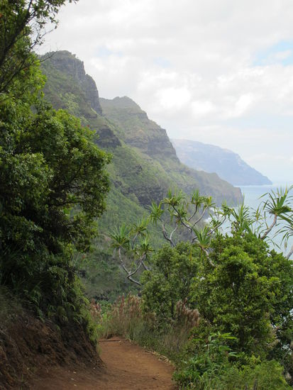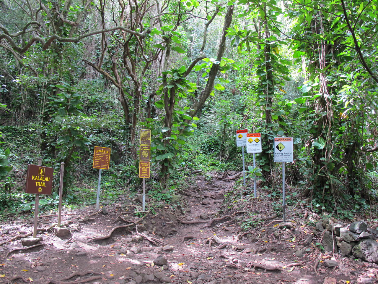 Nach den paar Metern an der Grotte vorbei gings endlich los, der Na'pali Coast State Park lag vor mir und der Kalalau Trail began. Ich wollte auf jeden Fall vom Start am Ke'e Beach bis zum Hanakapi'ai Beach laufen, die Standardtouristrecke. Evtl dann vom Hanakapi'ai Beach zu den Hanakapi'ai Falls.