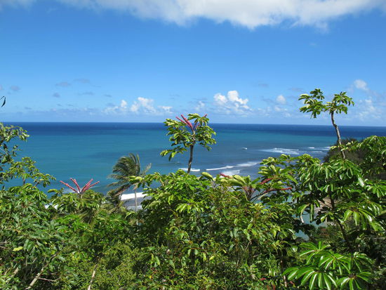 Den Trial zu den Hanakapi Falls hab ich nimmer gemacht. Geschafft hät ichs körperlich scho noch, aber zeitlich bin ich lieber zurück, da ich ja aufm Weg zum Hotel noch weng was anschauen und dort dann noch weng an den Strand wollte. Aufm Rückweg bin ich auch mal an ein paar Arbeitern vorbeigekommen, der eine hat grade Avocados vom Baum gepflückt, erlebt man auch net alle Tage. Wieder am Auto angekommen war ich scho wieder ein wenig getrocknet, unterwegs wars nämlich sehr warm, ich hab scho getropft. Es ging zurück Richtung Hanalei am Lumaha'i Beach vorbei, etz hatte ich ja im Gegensatz zur Hinfahrt Zeit zum Halten.