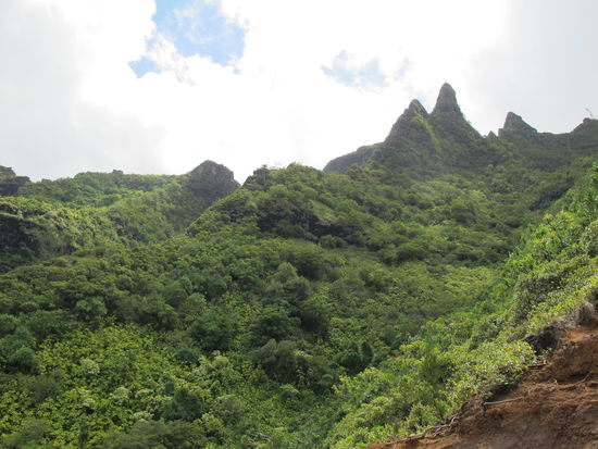 Von Hanalei aus bin ich dann wieder ein gutes Stück zügig durchgefahren bis ich in die Ko'olau Road abgebogen bin, die laut LP ein schöner Scenic Byway sein, naja war ganz nett, mehr aber auch net. Und die Zufahrten zu den zwei Stränden dort hab ich auch net gesehen, egal es gab dann noch einen Stop vor dem Hotel nämlich am Hole in the Mountain. Einem "kleinen" Loch in einem Berg, das man beim richtigen Lichteinfall und Sonnenschein sieht. Der Sage nach soll es von einem Riesen sein, der seinen Speer dort reinwarf um einen Wasserfall zu erzeugen.