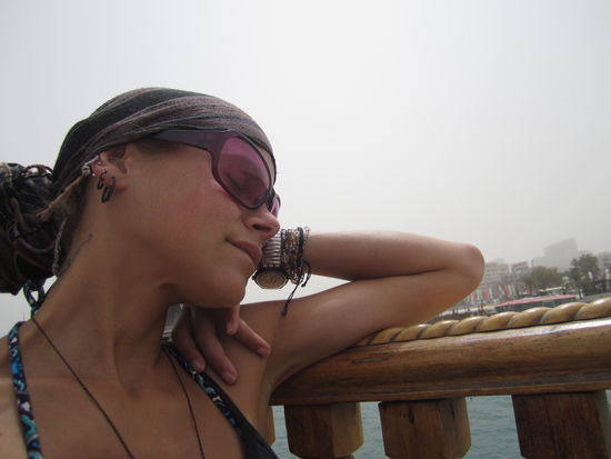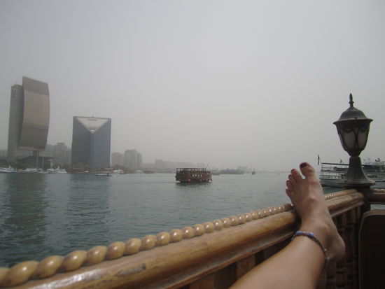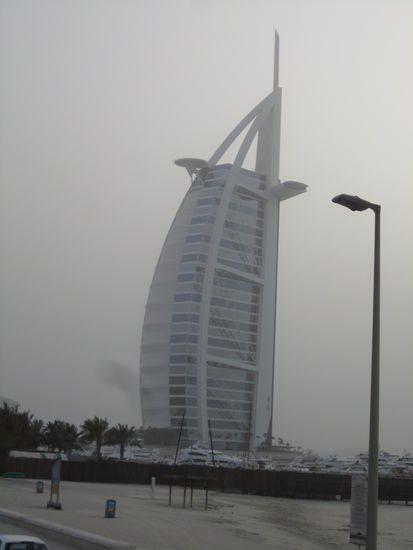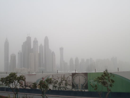 Nach einem Nickerchen mache ich mich auf in die Stadt und guck mir ein paar Sehenswürdigkeiten mittels Touristenbus an. Ein Sandsturm lässt leider kaum Sonne und blauen Himmel durch, doch ist die Stadt auch so sehr spannend zu entdecken. Vor allem wird mir so viel klarer, in welcher künstlich geschaffenen Oase ich mich hier eigentlich befinde. Absolut nichts, außer der viele Sand, ist natürlich. Dank der Ölvorkommen konnte eine vielfälltige Infrastruktur aufgebaut werden (dass alles noch neu ist, lässt sich für mich auch am Verhalten der Leute in der U-Bahn erkennen, Ein- und Aussteigenlassen ist für die Fahrgäste ein Fremdwort ). Mittlerweile ist Öl kein Hauptpfeiler mehr, auf den sich Dubais Reichtum baut. Andere Wirtschaftszweige wurden erkannt und werden genutzt.