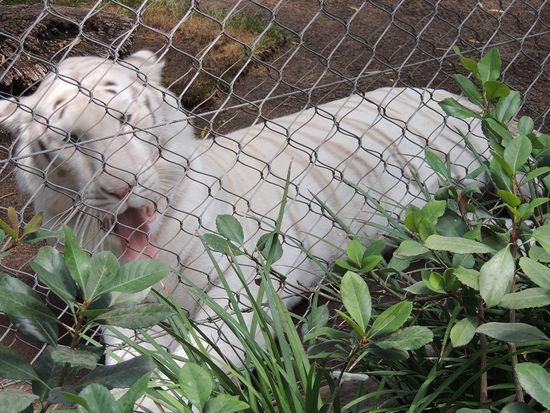 Da uns noch 3 Stunden blieben, wollten wir die weißen Tiger von Siegfried und Roy sehen. Die Gehege befinden sich im Secret Garden des Hotels Mirage. Die Anlage ist allgemein sehr schön. Zuerst kann man Delphine beobachten, wie sie ihre Runden drehen und auch mal einen Sprung machen. Dahinter sind die Tigerkäfige. Diese Burschen lagen aber allesamt faul herum und schliefen. Kaum Bewegung, bis auf einen, der sich im Wasser abkühlte.
