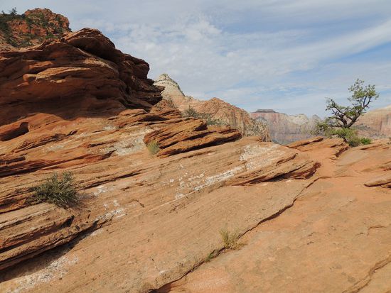 Gleich nach dem Tunnel war ein Parkplatz von dem aus es zum Zion Canyon Overlook ging. 1,5km klettern wurden mit wunderbaren Ausblicken belohnt.