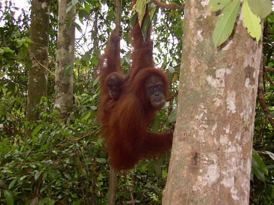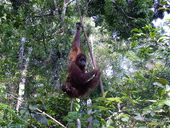 Es war ein unglaublicher Moment, als ich mit einem Ranger und einer Hand voll anderer Leute in den Urwald ging und wir plötzlich von weit oben diese gewaltigen Affen auf uns zu-gleiten sahen. Sie sind so gross und schwer und doch schweben sie fast von diesen 200-Meter Bäumen auf uns herab, kurz vor uns bleiben sie im Baum hängen und blicken uns an und wir haben keine Angst denn wir haben das Gefühl, dass sie friedlich sind und nur interessiert daran, was wir eigentlich hier machen...