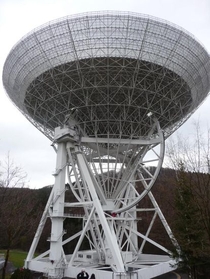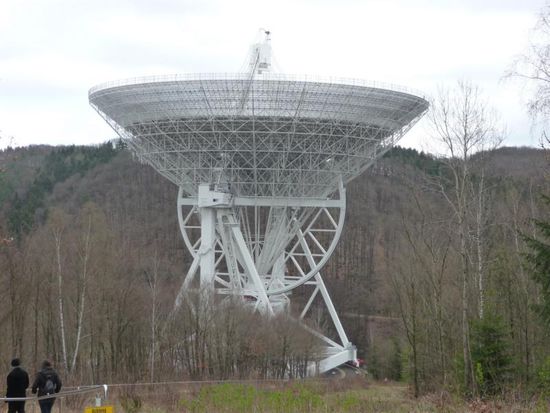 Das Radioteleskop empfängt Radiowellen aus bis zu 12 Milliarden Lichtjahren Entfernung. Die grünen Männlein lassen also grüßen