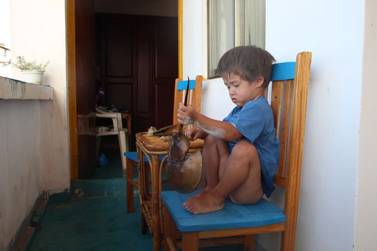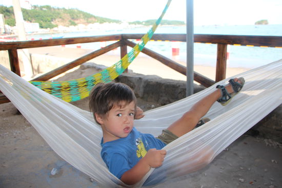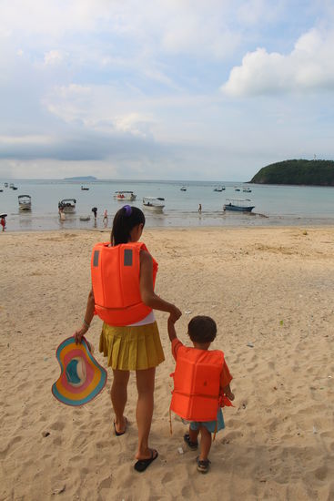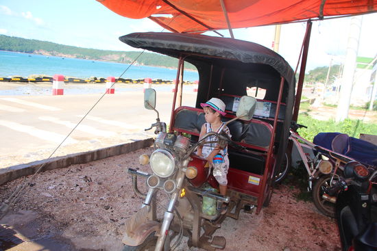 Es war tagsüber so heiß, dass an den langen, weißen Traumständen kein Mensch außer uns war. Meine Frau genoß das Essen aus dem Meer und ich das erkunden der Insel. Unser Sohn mochte vor allem die Motorrikschaw-fahrten über die Insel voller Bananenfelder. Die Insel ist der günstigste Ort für Bananen in ganz China.