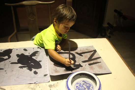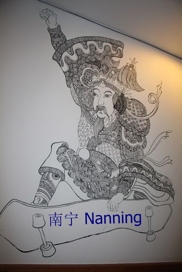 Nach der Insel Weizhou hatten wir uns Yangshuo als Ziel gesetzt und dazu mussten wir in den Norden von Guangxi fahren. Unterwegs stoppten wir dann in einer Jugendherberge in Nanning, wo wir auch eine alte Bekannte von meiner Frau trafen und mit ihnen eine nette Zeit verbrachten. Sie hatten Guangxi (Connections) zu jemandem, der in einem besonders schönen Teehaus arbeitet, indem normalerweise nur Politiker usw. Treffen haben. Es war sehr schön und unser Sohn durfte eine wenig Kaligraphie machen. Außerdem hatten wir Spaß dabei Geckos zu suchen. Das Museum über verschiedene Bevölkerungsgruppen ist auch sehr empfehlenswert!