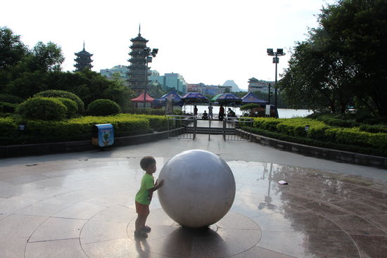 Wer nach Yangshuo will, fährt dort über Guilin hin. Aber Guilin ist auch eine wunderschöne Stadt. Überall stehen kleine Berge, wie sie für diese Gegend typisch sind, einfach so an der Straßenseite herum (: