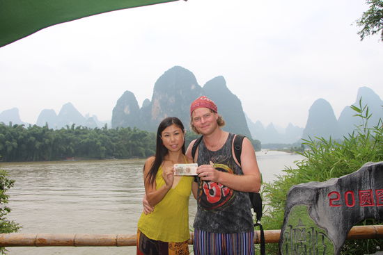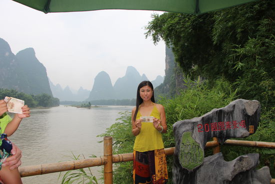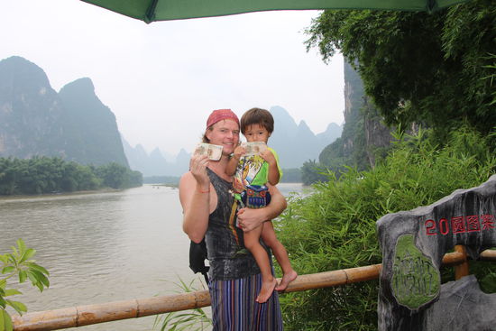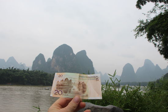Von Yangshuo aus machten wir auch einen Ausflug nach Xingping. Dies ist wieder ein antiker Ort mit vielen kleinen Gassen voller traditioneller Häuser. Berühmt ist der Ort allerdings wegen dem gemalten Bild auf der 20 RMB Geldnote. Wie alle Touristen ließen wir uns an der Stelle photographieren, von der man die Landschaft sieht, die auf dem Geldschein abgebildet ist.