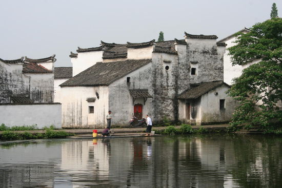 Zhuge Village ist ein Ort, dass nach dem Ying&Yang-Prinzip im 8eck angelegt wurde. Das ganze Dorf ist schwarz/weiss und in der Mitte ist ein kleiner Teich in Ying-&Yang-Form. Die Hälfte der Einwohner, die Nachfahren von Zhuge sind, sind darauf besonders stolz.