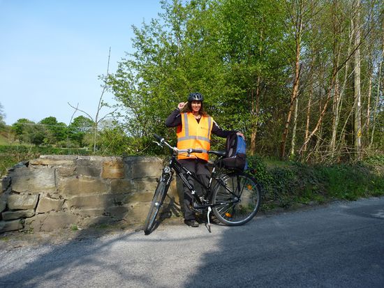 Endlich war mal der Sattel hoch genug und Warnweste und Helm gab´s auch noch dazu.