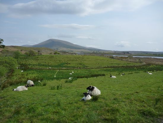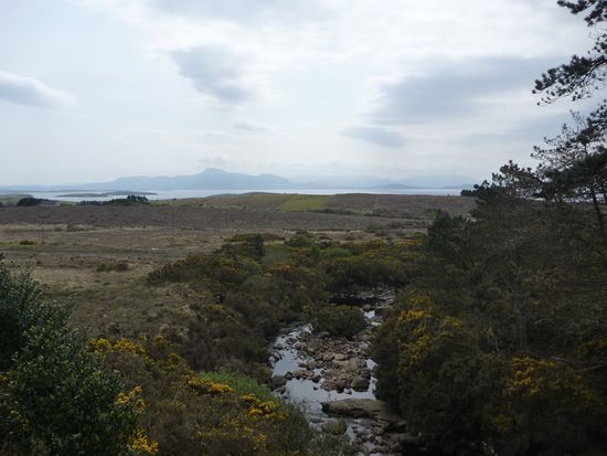 Um 10 Uhr losgefahren, um 13 Uhr in Mulranny angekommen. Dort kaufte ich mir Verpflegung in Form einer Apfeltasche und eines Scones und aß beides mit traumhaftem Blick aufs Meer auf einer schönen Wiese sitzend.