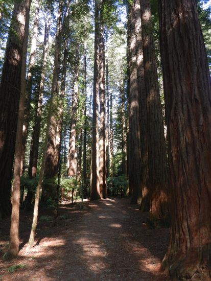 Am Stadtrand gibt es tolle Wandermoeglichkeiten, z. B. durch einen Wald aus riesigen kalifornischen Redwood-Baeumen! Diese koennen bis zu 80m hoch werden und haben einen massiven Umfang.