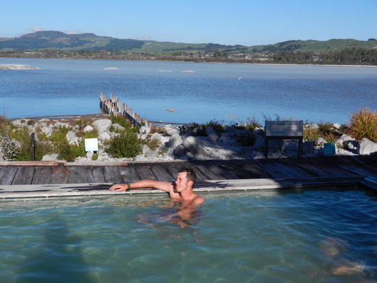 Da die Stadt bekannt ist fuer ihre heissen Quellen, goennten wir uns zur Kroenung des Tages ein paar relaxte Stunden in den Hotpools. Diese Anlage direkt am See zaehlt zu den schoensten der Welt. Da es auch nicht zu teuer war, machte das chillen in den 38 - 42 Grad heissen