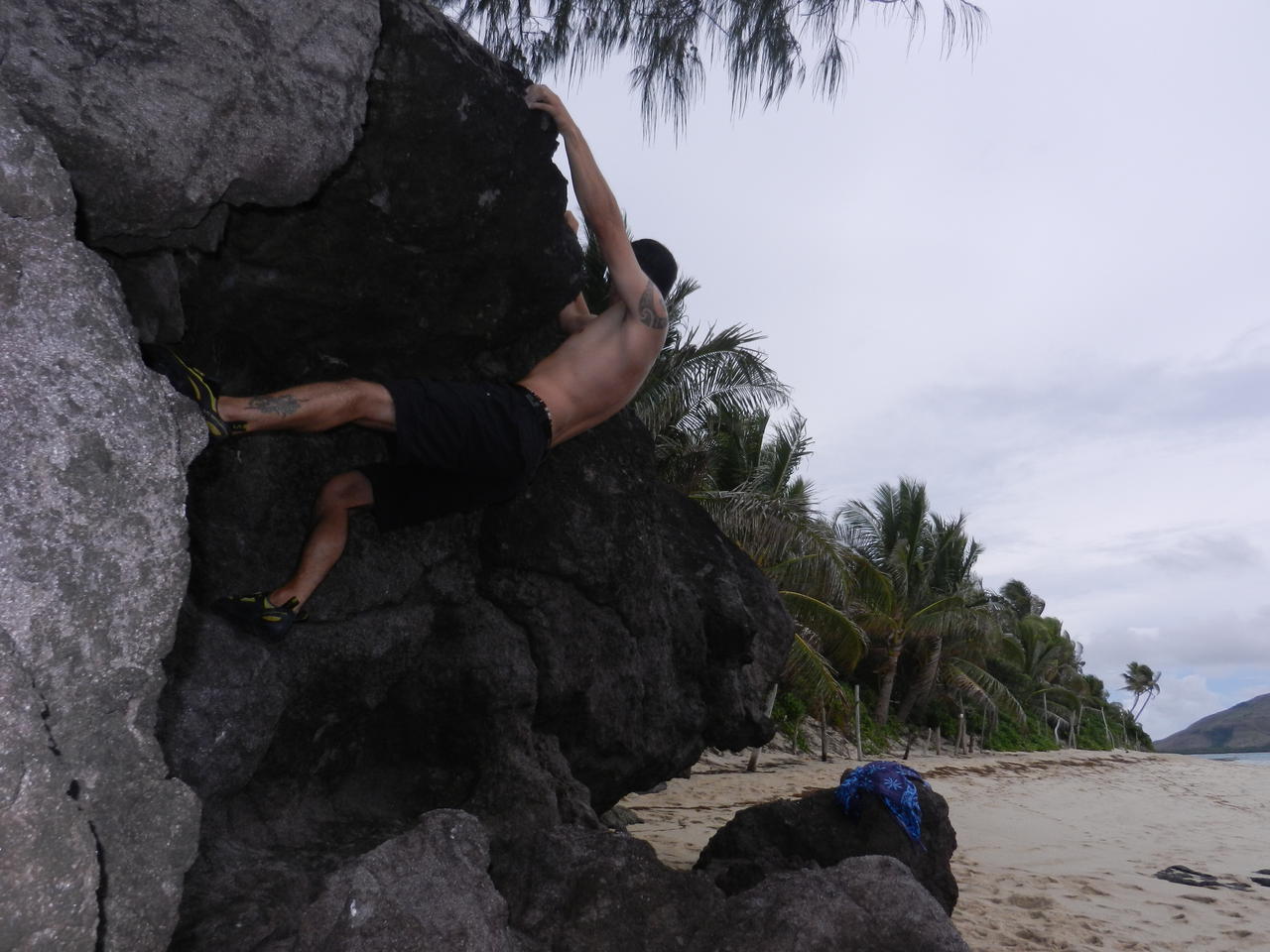 Nach dem traumhaften Aufenthalt auf Nacula sprangen wir gleich auf die Nachbarinsel ins Gold Coast Resort zu Mama Filo! Eigentlich nur ein paar Huetten an nem kleinen Strand, perfekt um sich im Nichts-Tun zu ueben...wobei, ein bisschen bouldern war noch drin...