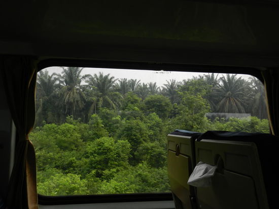 Die schoenen Tage in Singapur sind vorbei und nun reisen wir zum ersten mal mit einem neuen Verkehrsmittel weiter! Mit dem Zug fuhren wir von Singapur ueber die Grenze nach Malaysia bis in die Hauptstadt Kuala Lumpur. Man sieht sicherlich mehr, als wenn man fliegt ...doch das, was wir auf dieser 7 stuendigen Fahrt sahen, haben wir nicht unbedingt erwartet! Nach der ersten Stunde, wo die Landschaft noch sehr gruen und von Dschungel gepraegt war, fuhren wir die restliche Zeit nur noch an Palmplantagen und abgeholzten Waeldern vorbei! Dies war sehr schockierend und traurig anzusehen!