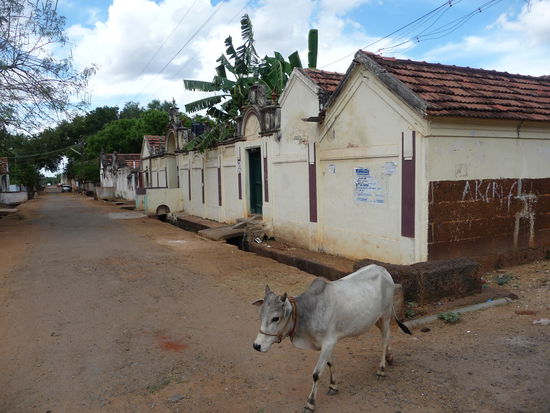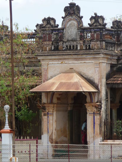 Am frühen Nachmittag erreichte ich Chettinad das Land der Chettiars die vor allem in der Vergangenheit mit Geschäftssinn und angeborenen Talent für Handel gesegnet sind.Für mehr als 100 Jahre besonders während ses 19. Jh. waren die Chettiars ein wesentliches Element des lokalen Finanzhandels u.a. auch in südostasiatischen Ländern die von Briten,Franzosen und Holländern regiert wurden wie Ceylon heute Sri Lanka,Burma oder Indochina. Prächtige Herrenhäuser zeugen noch heute aus dieser erfolgreichen Vergangenheit.