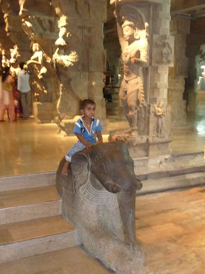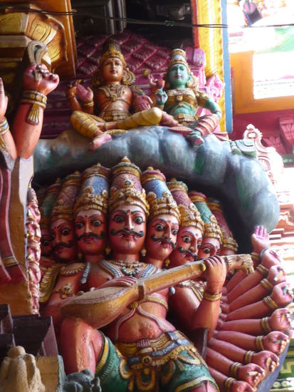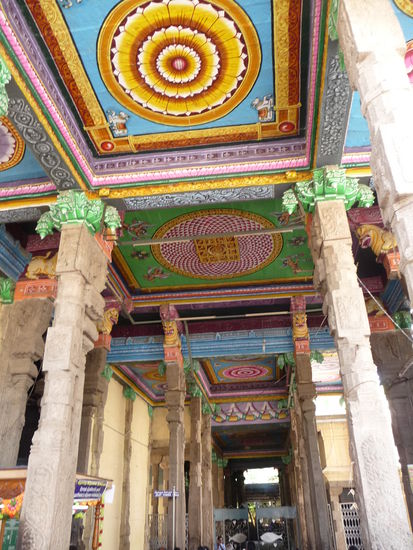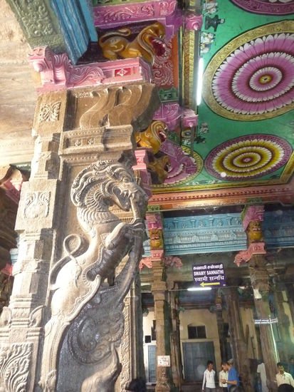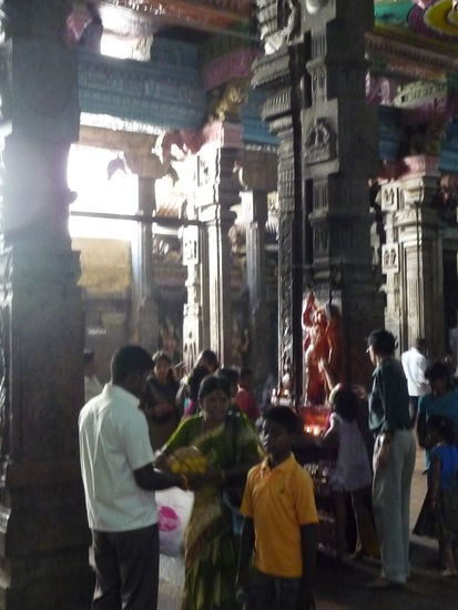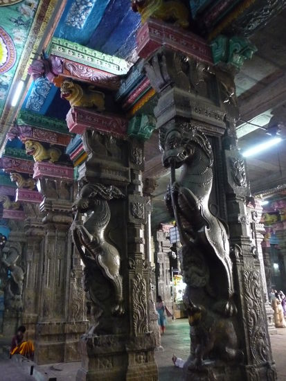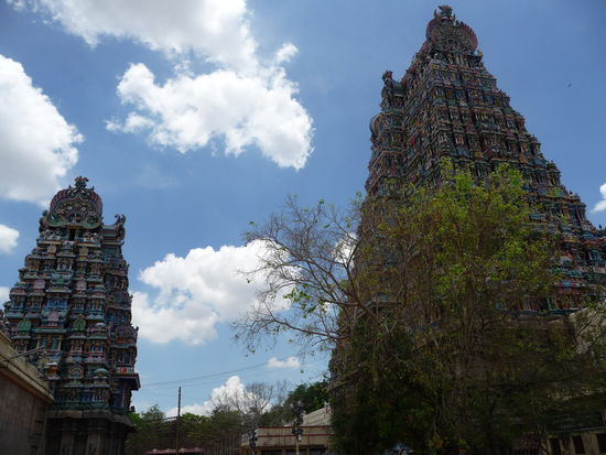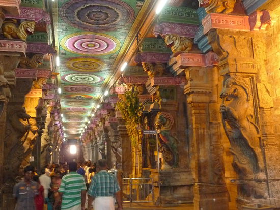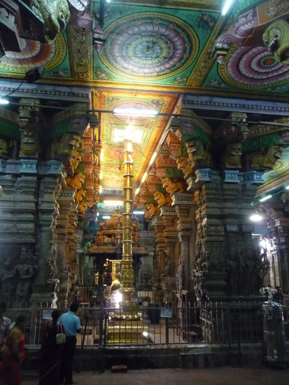 Eine einzigartige Atmosphäre aus Geschäftigkeit und Religiosität bildet sicher der berühmte Sri Meenakshi Tempel im Zentrum der Stadt.Der Tempel in denen Shiva und Meenakshi verehrt werden wird täglich von mehr als 10000 Menschen besucht. Mit seinen Schreinen,Hallen,Skulpturen und Wandgemälden ist er auch bis heute sozialer Mittelpunkt des städtischen Lebens. Die ältesten Anlagen entstanden bereits während der Pandya Zeit im 12. Jh. während seine heutige Gestalt überwiegend erst während der Nayak Zeit im 16. Jh. erbaut wurde. Er ist ein weiteres bedeutendes Beispiel dravidischer Tempelarchitektur. Für mich gehörte dieser Tempel mit zu den beeindruckensten während meiner Südindienreise in den ich 4 Stunden verbrachte.