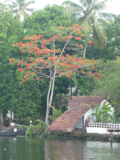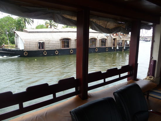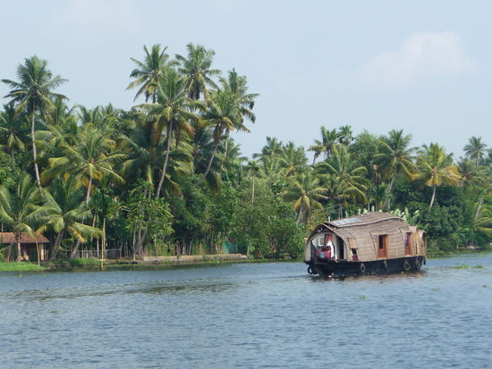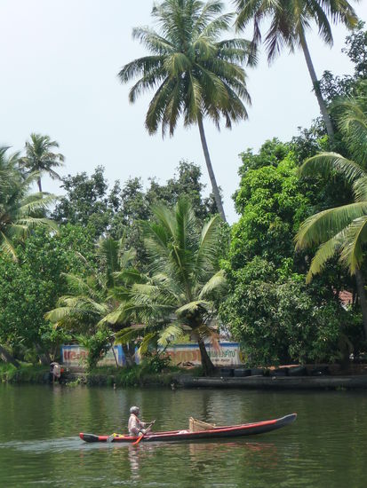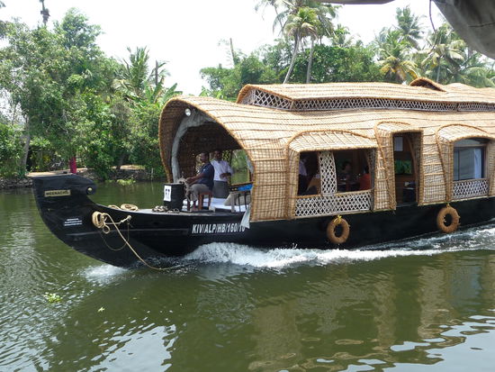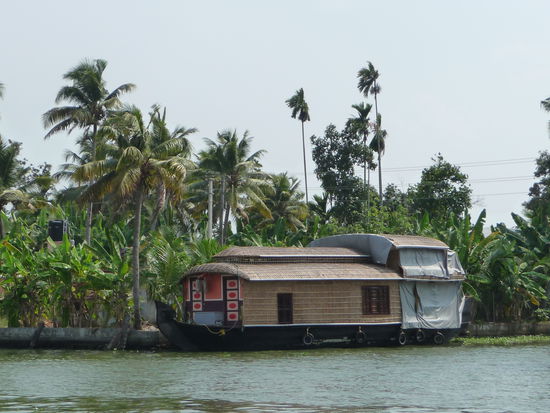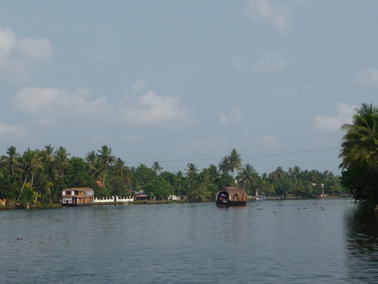 Nachdem ich die letzten 2 Tage genutzt habe mich im Periyar Nationalpark etwas zu erholen ging unsere Fahrt heute zu den zauberhaften Backwaters was sicher das Highlight in Kerala ist .Gegen Mittag bestieg ich eines der vielen Hausboote um die nächsten 24 Stunden dort zu verbringen und die Landschaft auf den Lagunen,Seen und künstlichen Kanälen zu bestaunen dazu wurde ich bestens versorgt von meinem privaten Schiffskoch der leckere keralische Gerichte zubereitete.Insgesamt bestand die Besatzung aus Bootsführer,Koch und Zimmerjunge und das alles für mich allein da fühlt man sich schon fast wie ein König.Das Zimmer war sehr sauber und die Klimmaanlage funktionierte bis auf einen kurzen Stop von 5 Minuten die ganze Nacht durch perfekt.Die Backwaters sind nicht nur ein Highlight für Touristen sondern bilden auch seit vielen Jahrhunderten wichtige Verkehrsadern der Region.