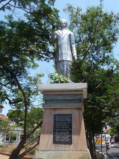 Nach mehrstündiger Fahrt Richtung Süden bin ich in der ehemaligen französischen Kolonialstadt Pondicherry angekommen. Seit die Franzosen 1673 in dem Ort anlandeten blieb dieser bis 1954 die Hauptstadt von Französisch - Indien. Auch heute noch fühlt und sieht man überall den französichen Einfluß der diese Stadt geprägt hat. Es gibt französische Zeitungen,Restaurants,Bäckerein und Straßennamen.