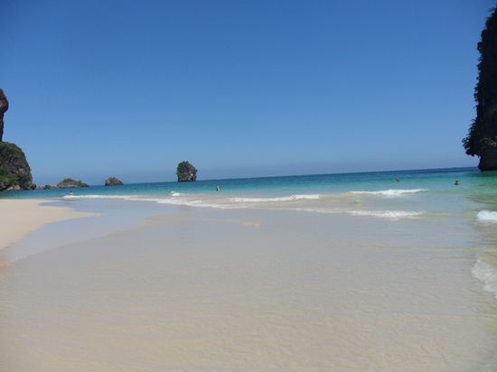 Heute haben wir am Strand gefruehstueckt und sind mit dem Boot Richtung Phranang Cave Beach. Einmalig diese Kulisse und der traumhafte Strand. Jedes Paradies hat jedoch seine Tuecken: Quallen haben uns angegriffen
