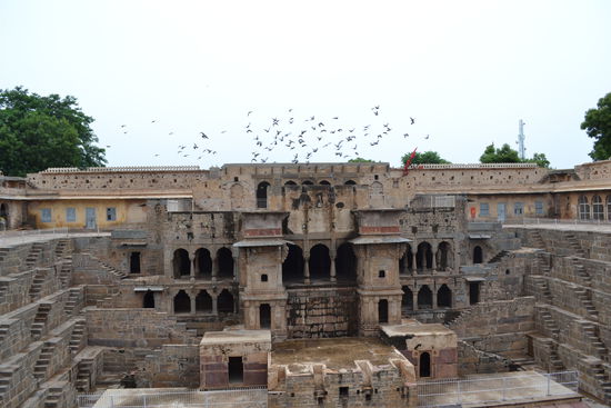 Schließlich gelang ich zu einem großen Kreisel und musste mich wagemutig in den Verkehr stürzen um auf die andere Straßenseite zu gelangen. Wenn man da nicht aufpasst kann man schnell von einem der verschiedenen heranrasenden Fahrzeuge erfasst werden. Ohne Blessuren kam ich zum Glück rüber und machte mich auf dem Weg zu Hawa Mahal, das auffälligste Wahrzeichen von Jaipur. Es ist ein filigran gearbeiteter Traum im Wabendesign wie aus dem Märchen. Es besteht aus rosafarbenem Sandstein und ist fünf Stockwerke hoch.