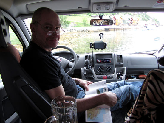 Danach geht es noch einmal mit der Fähre von Fodnes nach Mannhellen und gleich in der Nähe ist dann auch Kaupanger. Dort haben wir uns die Stabkirche angeshen, aber nur von aussen, denn wenn man hinein wollte, musste man 14 € für zwei Personen bezahlen. Für eine Kirche anschauen, war uns das zu viel. Den idyllischen Campinplatz haben wir auch gefunden, ist er auch. Ich dachte es wäre ein Stellplatz, wir hatten keinen Strom und ich sah auch keine Toiletten.. aber als Michael am nächsten Morgen mit dem Hund Gassi ging, sah er ein Schild und ein Briefkasten, hier sollte man 100 Kronen hinterlassen, wenn man gecampt hat und dort gab es wohl auch sanitäre Anlagen, aber sehr einfach. Da wir ja ehrliche und anständige Bürger sind, haben wir das auch gemacht.. Wir fragten uns nur, was sie machen, wenn man nichts einwirft...