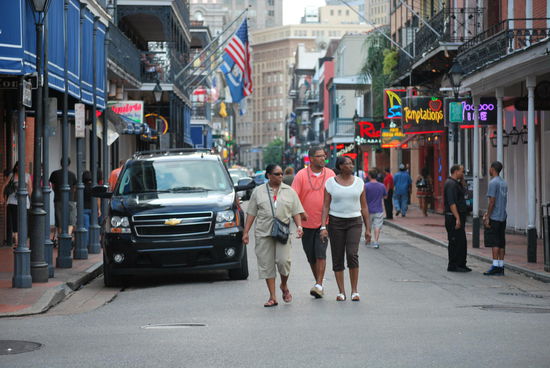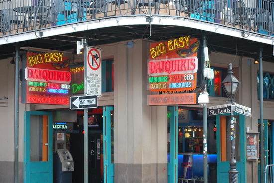 An diesem Abend machen wir uns allerdings keine Sorgen, inzwischen bin auch ich mit einem Glas Weisswein versorgt und nachdem wir uns von dem netten Angestellten verabschiedet haben, überreden die beiden Texanerinnen mich, mitzukommen auf die Piste, um noch ein wenig gepflegt Party zu machen. Das hatte ich eigentlich überhaupt nicht vor, bin auch viel zu müde (eigentlich), aber "Texas" lässt nicht locker. Also brezele ich mich so gut es geht auf (denn ich habe keine wirklich schicken Klamotten dabei), stecke mir nur eine Kreditkarte und etwas Bargeld ein und schwupps landen wir im french quarter und ziehen von Bar zu Bar. Nach 2-3 Margaritas spreche selbst ich breitesten Südstaaten-Akzent ! Oh, oh ! Ich lasse das Ganze nicht ausufern, verabschiede mich nach der 3. Bar und bin gegen 1.00 Uhr morgens wieder im Hotel.
