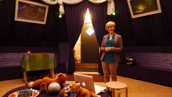 Das Mädel erzählt mir sehr motiviert etwas von der Entstehung und den Mythen der Nordlichter und dabei werden ein paar Bilder an die Decke projiziert.