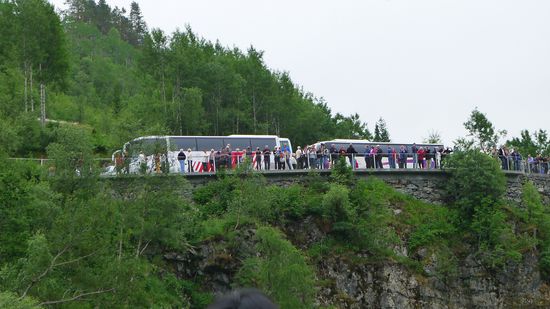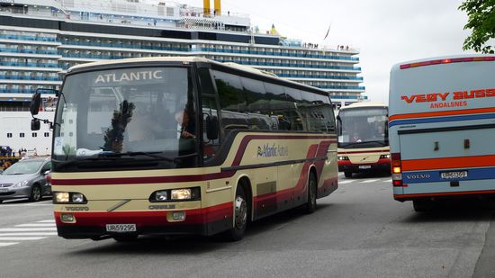 Eine Unmenge an Bussen steht bereit, um Hunderte von Passagieren zu den Sehenswürdigkeiten der Umgebung zu bringen....die Trollstigen und der Geirangerfjord, welche ich heute ja auch ansteuern werde.