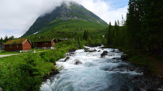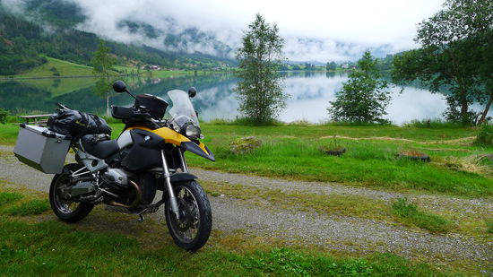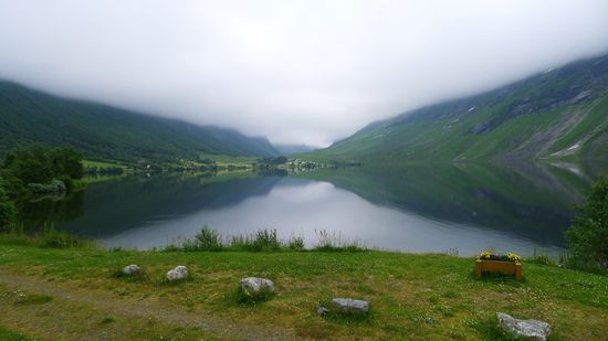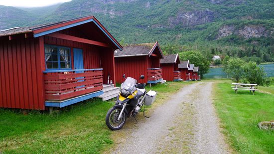 Da ich heute insgesamt noch nicht viele Kilometer gemacht habe, fahre ich nach der Fährüberfahrt noch ungefähr 100 km bis in die Nähe des Gletscherarms Briksdalsbreen, der zum größten Gletscher auf dem europäischen Festland gehört, dem Gletscher Jostedalsbreen.