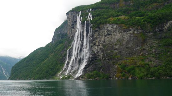 Und dann liegt es plötzlich vor mir, DAS Norwegen- Motiv schlechthin, der Geirangerfjord mit seinen Wasserfällen, bekannt aus Fernsehen, Zeitschrift und Reisekatalog ...