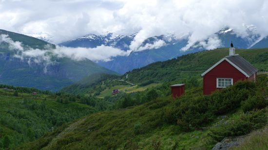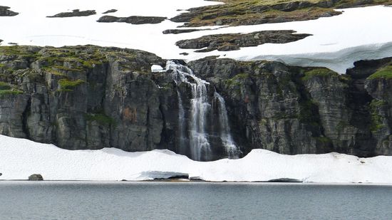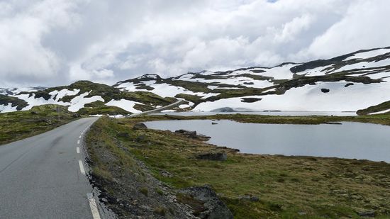 Eigentlich will ich heute noch in die Nähe von Bergen kommen, aber nicht über den direkten Weg, das könnte ich noch locker bis Abends schaffen, sondern über die R7, die durch die Landschaft der Hardangervidda führt.