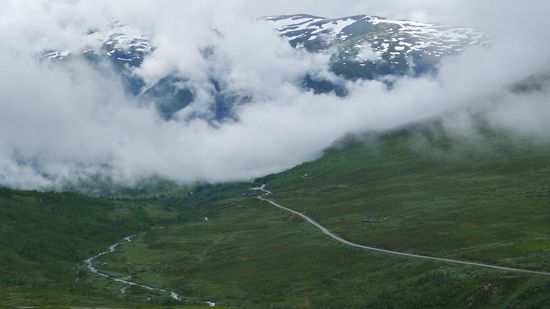 Nach dem Tunnel führt die Strasse über eine kleine Hochebene nach Geilo. Es hat wieder angefangen zu regnen oder soll ich besser sagen, Thor scheint gerade ziemlich böse zu sein und hat die Schleusen geöffnet. Mensch, ich habe ihm doch gar nichts getan ...