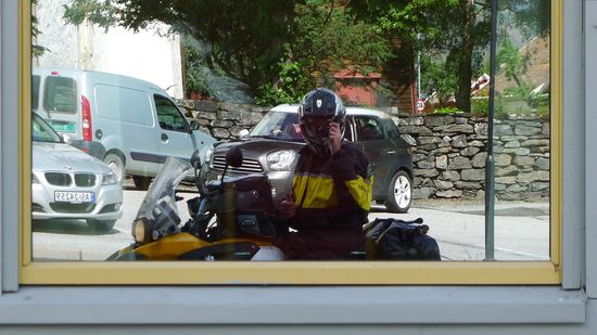 Ein Typ in einem Landrover, der neben mir steht und mit seinem vielleicht 8- 10- jährigen Sohn unterwegs ist, spricht mich an, ob ich was Neues wüsste. James heisst er und wir kommen ins Gespräch. Total netter Kerl, 35 Jahre, Engländer aus Wales, der mit 21 Jahren "mal eben so" nach Schweden ausgewandert ist, weil es ihm nach einer Urlaubsreise dort so gut gefiel. Mittlerweile ist er mit einer Schwedin verheiratet und hat zwei Kinder. Mit Levi macht er nun einen Vater- Sohn- Urlaub und steht nun schon seit Stunden vor dem Tunnel. Ich erkläre ihm die Situation und wir fragen uns Beide....warten oder umdrehen und 150 km Umweg?