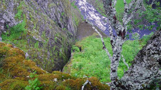 Und oben gibt es eine Art Weg am Abgrund entlang, keine Absperrung, nichts...dort entlanzugehen und runterschauen erfolgt auf eigene Gefahr. Die Norweger sind da schmerzfrei, in den Alpen würde es so etwas an touristischen Punkten wie diesen hier ohne Absperrung nicht geben ...