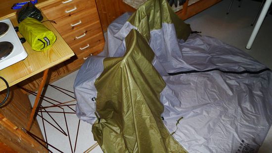 Man soll die Hoffnung, dass es trotz dichter Bewölkung in der Nacht nicht anfängt zu regnen, niemals aufgeben, vor allem, wenn man wegen später Ankunft gar keine andere Wahl hatte, als das Zelt aufzubauen.