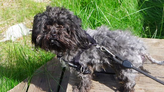 Bevor ich die anderen Hüttenbewohner begrüßen kann, rennt schwanzwedelnd auch schon der kleine Pepsi auf mich zu, macht vor mir "Männchen" und schleckt mich anschliessend mit wachsender Begeisterung ab.
