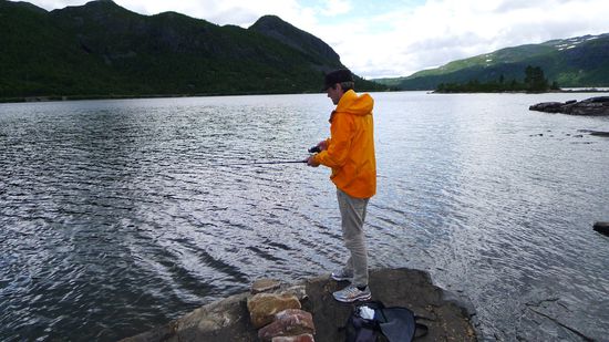 Jan gehört da aber eher zu der ungeduldigen Fraktion, die nur mal ab und zu ihr Glück versuchen oder die Angel mit auf mehrtägige Wanderungen durch die Wildnis Norwegens nehmen.