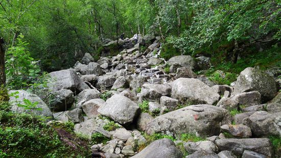 Der Aufstieg ist doch mühsamer als erwartet und ich muss aufpassen, dass ich auf den nassen Steinen nicht ausrutsche.