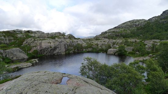 Nach weiteren 40 Minuten wird es langsam flacher und ich komme in die Nähe der Felskante zum Lysefjord.