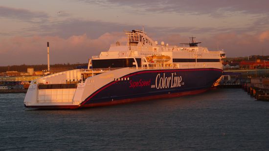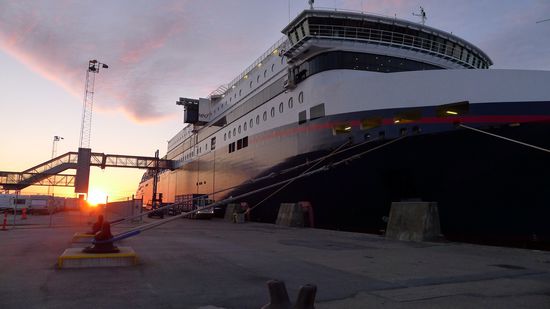 Gegen 19 Uhr geht es dann endlich auf die Superfähre...