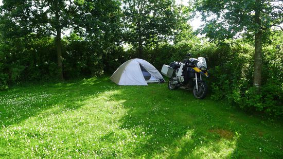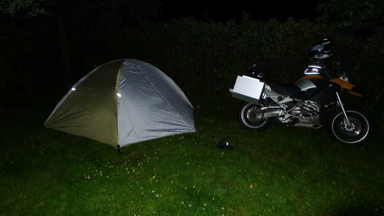 Ich baue also mein Zelt auf einer schönen Wiese auf dem Rastplatz auf ...