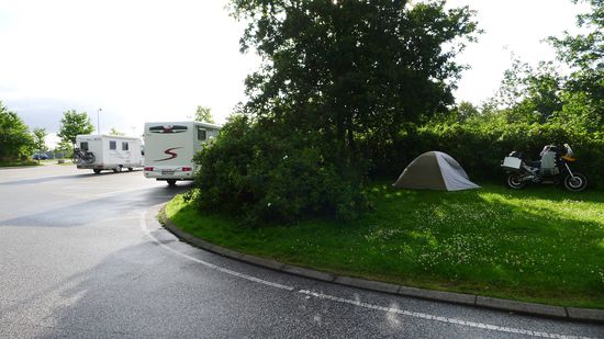 Hmm, wenn ich die Wohnmobile und LKW´s so sehe, die hier übernachten, frage ich mich, warum Möppi- Fahrer nicht das gleiche Recht haben sollen.