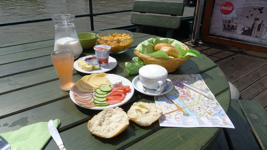 Erstmal duschen im Gemeinschaftsbad. Das Leben auf so einem Boot ist doch recht beengt, auf Dauer wäre das wohl doch nichts für mich. Wo sind denn die ganzen anderen Gäste? Es ist doch erst 09.00 Uhr? Wahrscheinlich bei dem tollen Wetter schon unterwegs. Ich lasse mir Zeit, jetzt wird erstmal an Deck gefrühstückt.